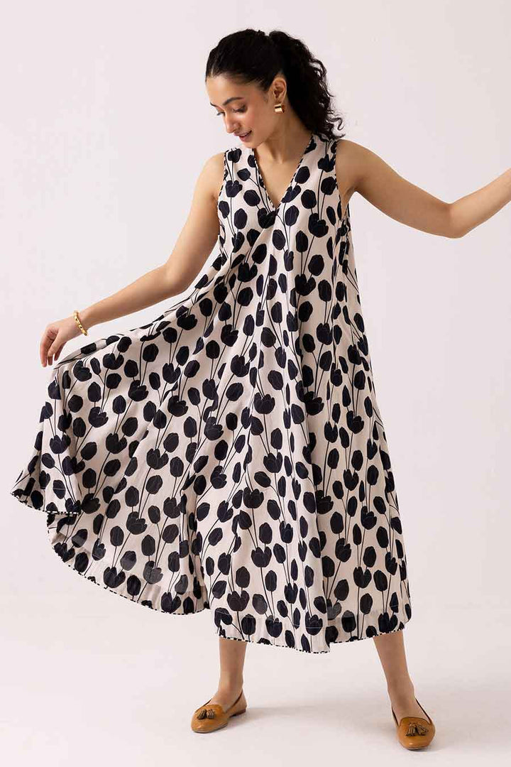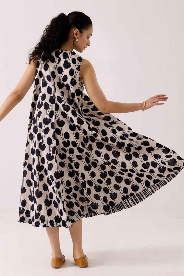 Black Floral Printed Tulip Dress