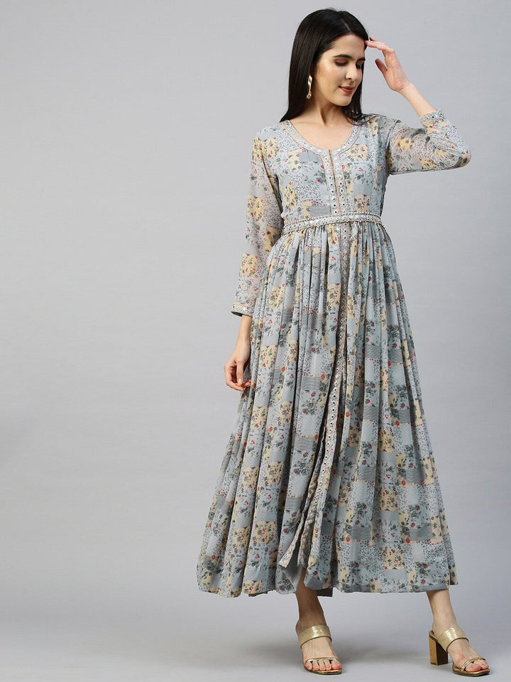 Blue Floral Georgette Maxi Dress