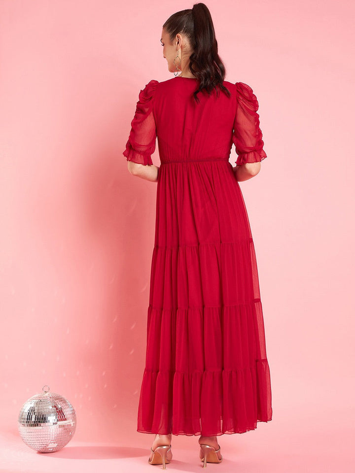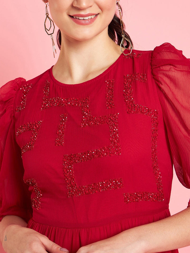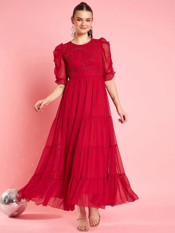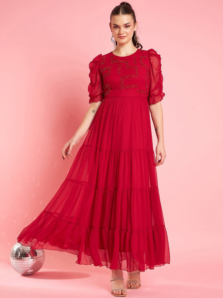 Embellished Puff Sleeve Chiffon Maxi Dress