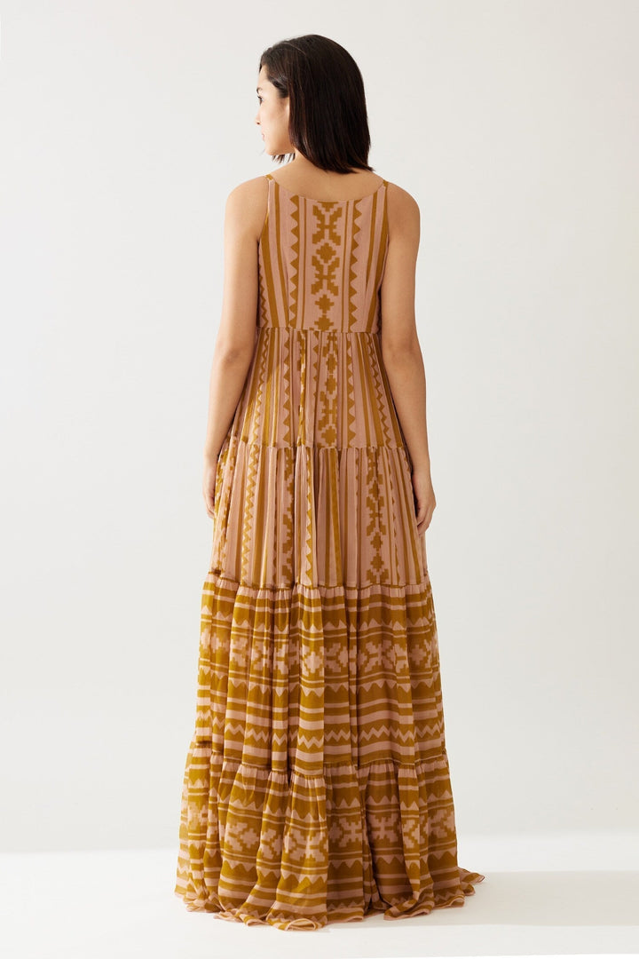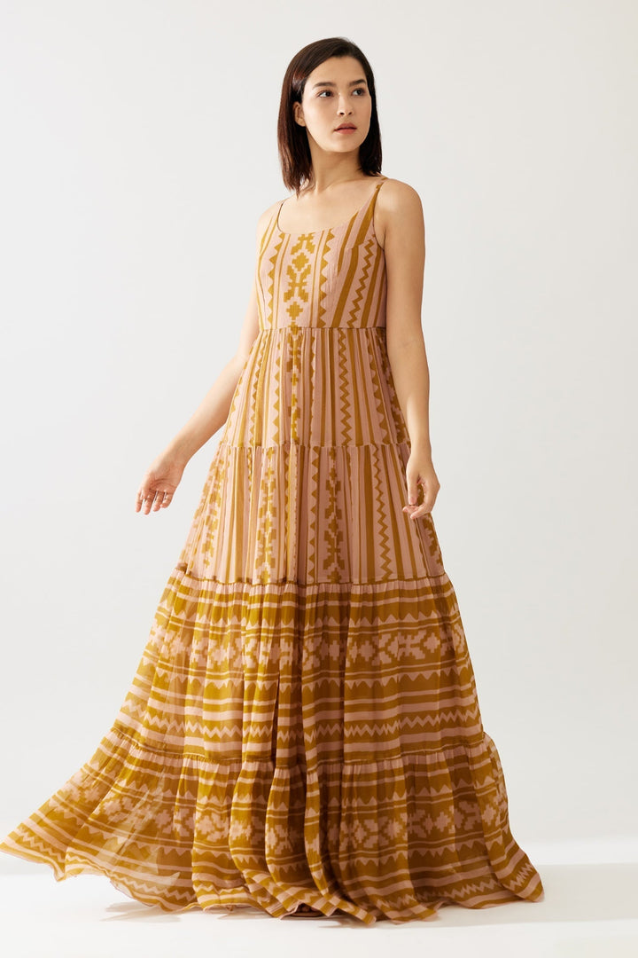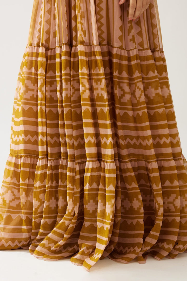 Pink Chiffon Printed Geometric U Neck Dress For Women