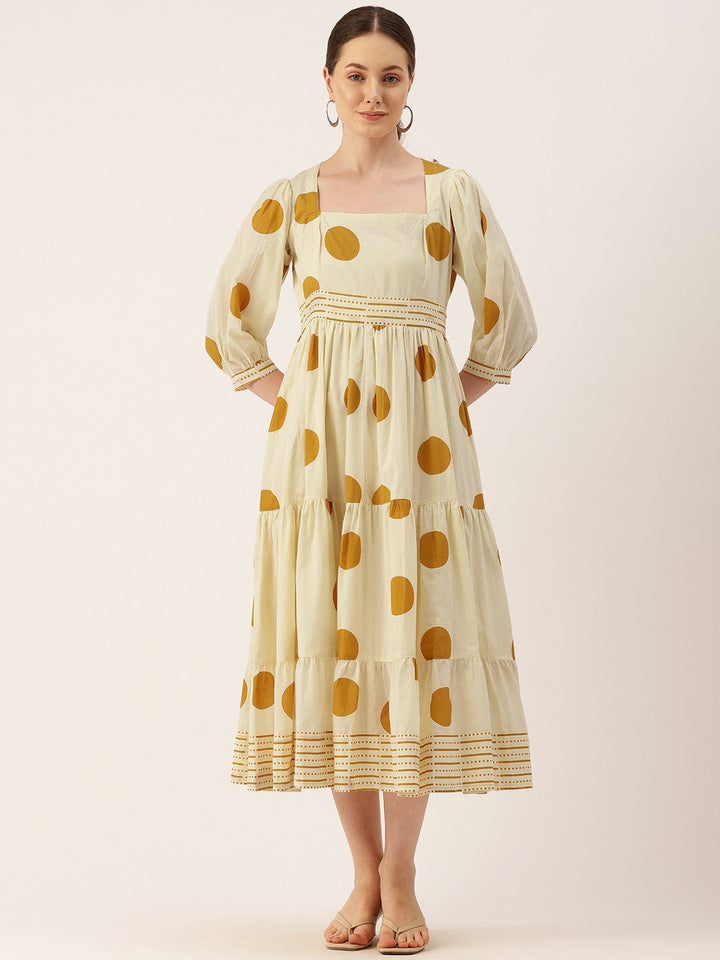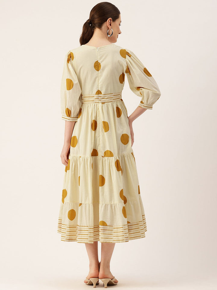 Polka Dot Print Puff Sleeve Fit & Flare Midi Dress
