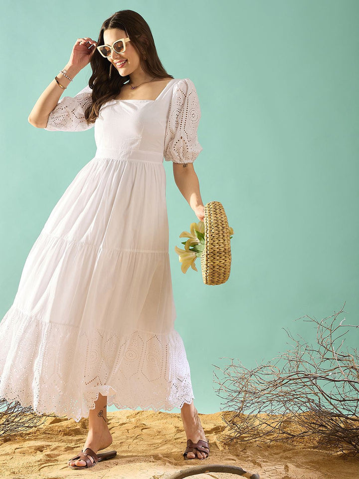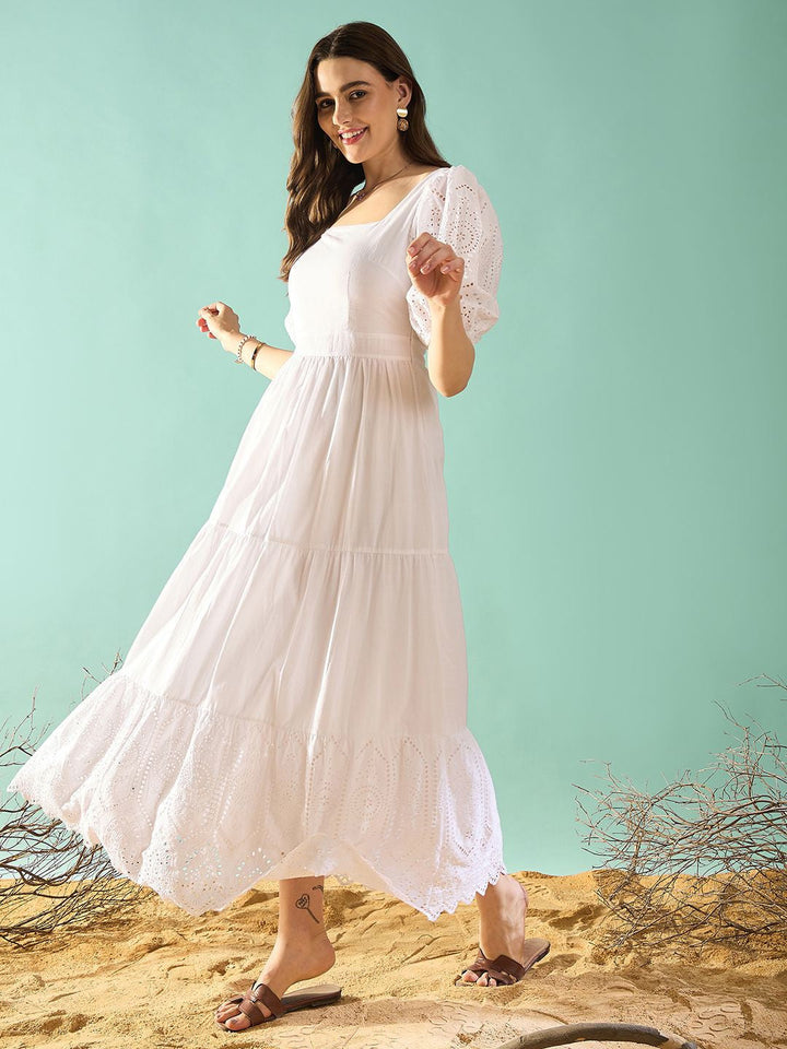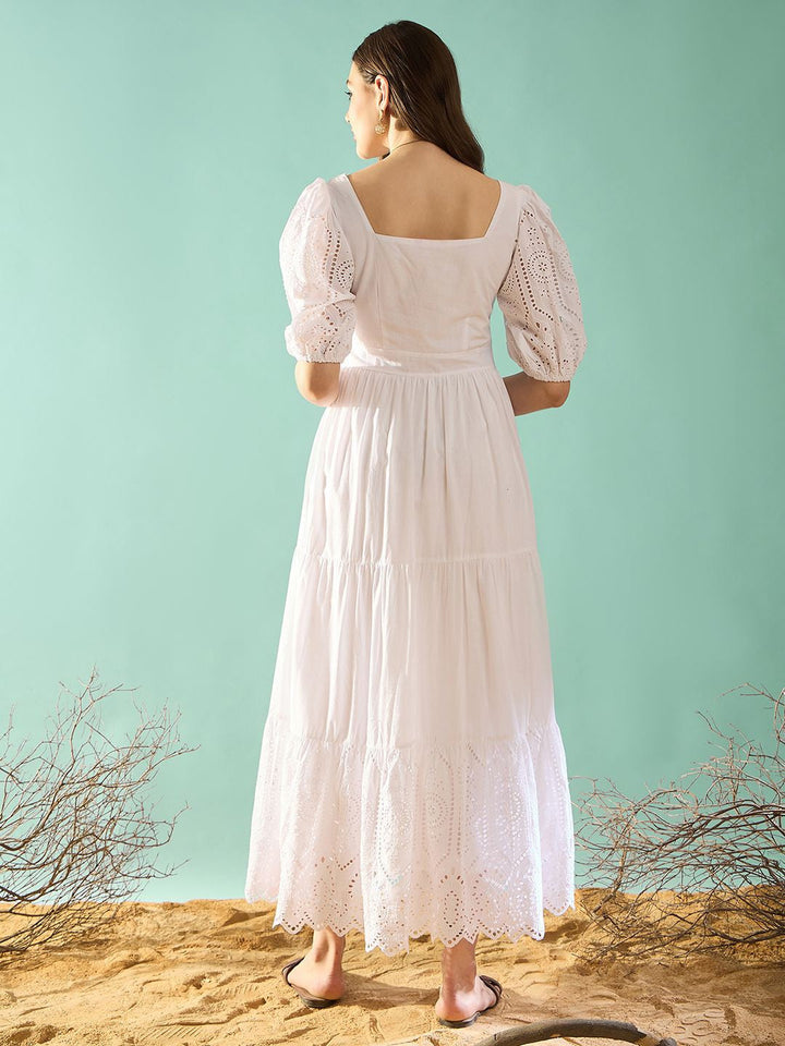 Puff Sleeve Schiffli Tiered Maxi Dress