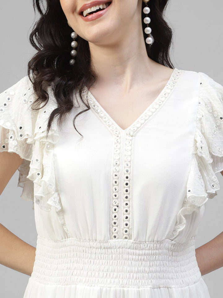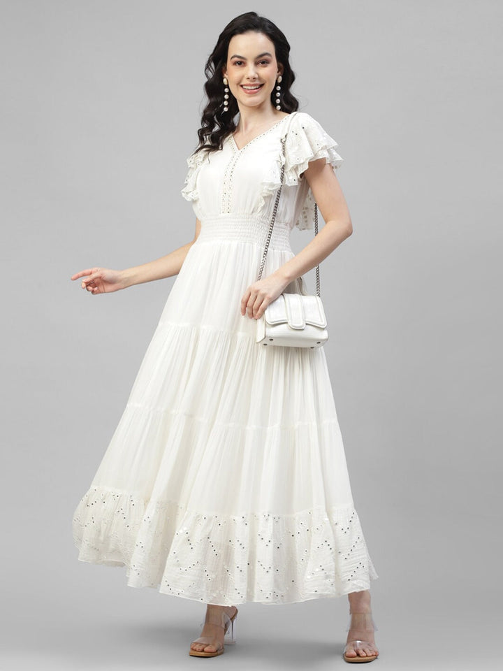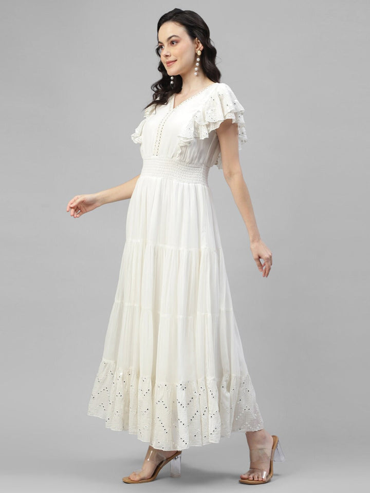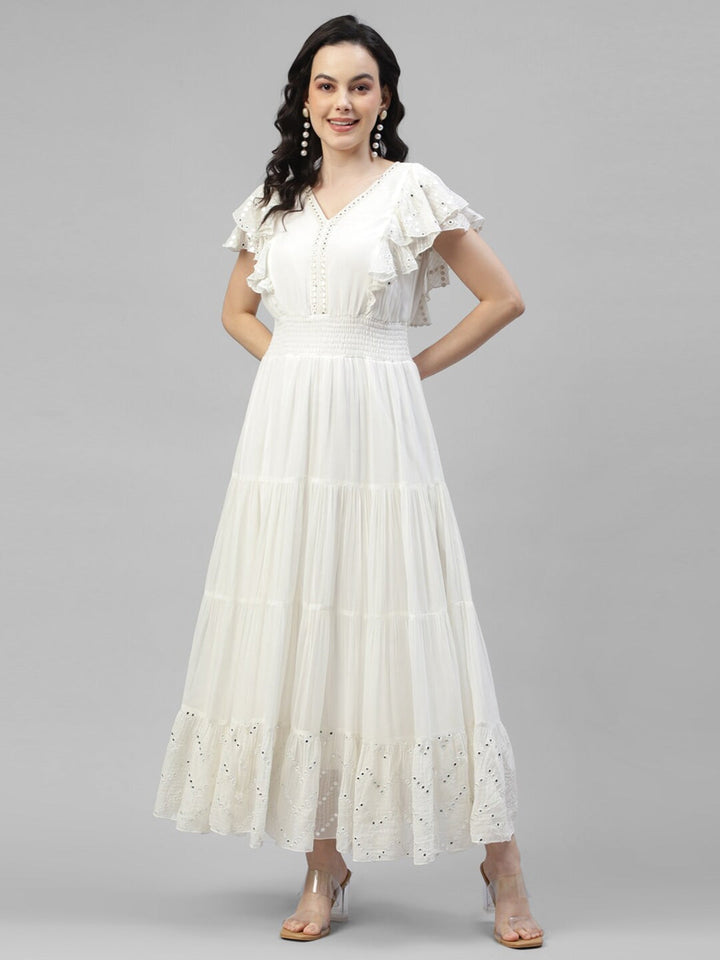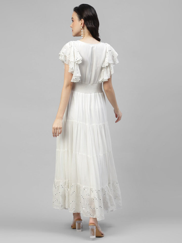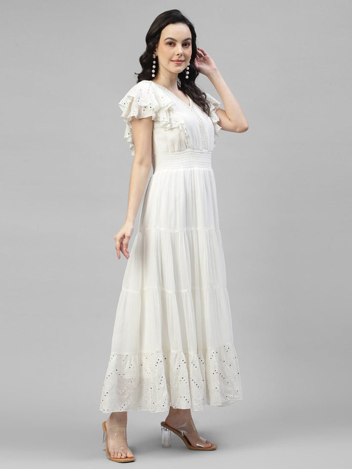 Self Designed Flared Sleeve Smocked Georgette Maxi Dress