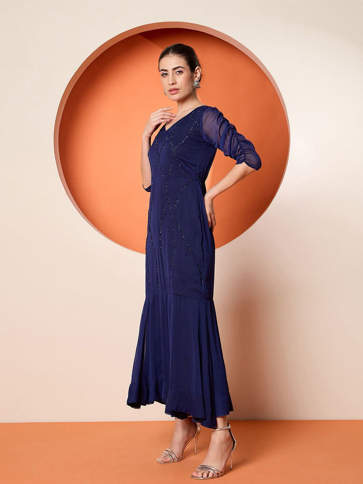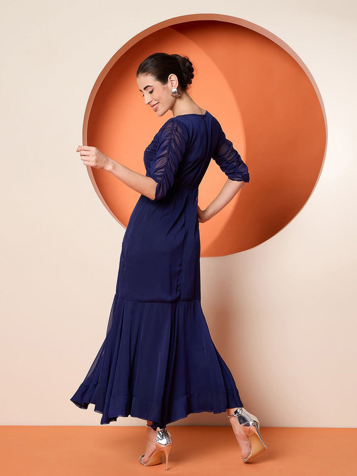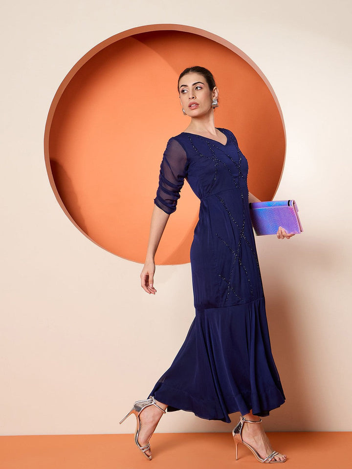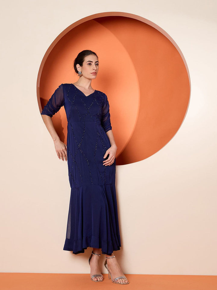 Women Embellished Chiffon Three-Quarter Sleeves Maxi Dress