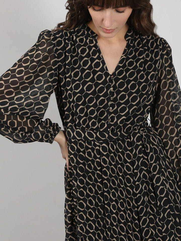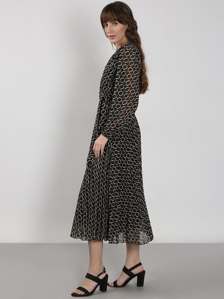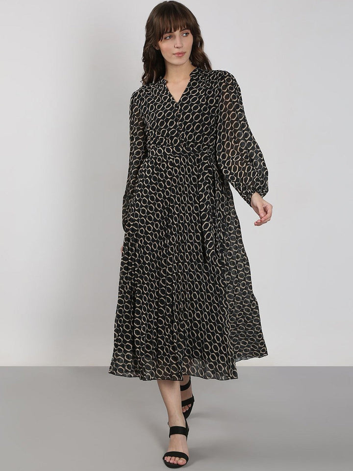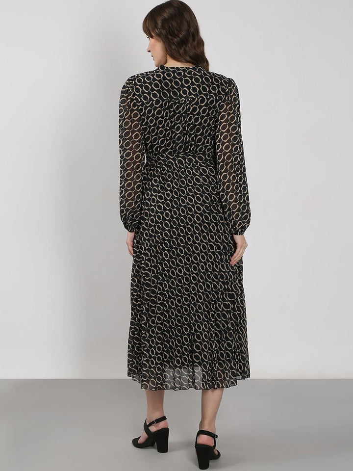Women Printed Puff Sleeves Fit & Flare Midi Dress